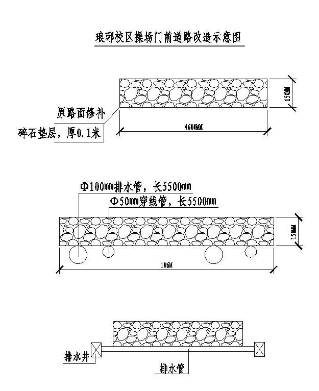 | 太阳成集团tyc9728琅琊校区操场门前道路改造工程 | 一、工程概况:改造的道路位于太阳成集团tyc9728琅琊校区操场东侧、招待所南侧、大学生活动中心北侧,总长约106米,宽约4.6米。 二、做法及要求: 1、原路面重新修补,碎石垫层,厚10㎜。粒径20㎜—40㎜,均匀铺设,碾压或夯实。 2、预埋2道穿线管Φ50㎜、2道排水管Φ100㎜,穿线管、排水管长5500㎜。 3、C25商品砼面层,厚150㎜。 4、道路设置伸缩缝、膨胀缝。 三、质量要求:合格 |