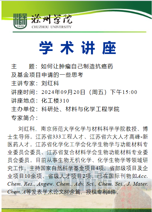 【学术讲座】如何让肿瘤自己制造抗癌药及基金项目申请的一些思考