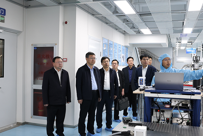 会前,周旭、郑朝贵一行实地参观了安徽大学强光磁科学中心和集成电路先进材料与技术产教研融合研究院。