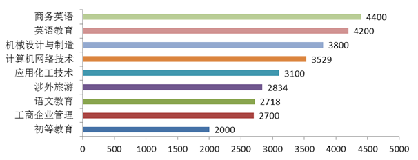 图2太阳成集团tyc97282015届专科专业毕业生平均月薪(元)