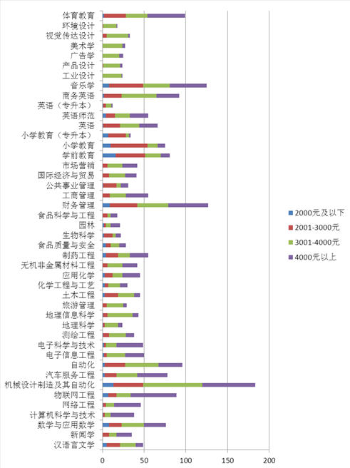 学院 | 2000元及以下 | 2001-3000元 | 3001-4000元 | 4000元以上 | ||||