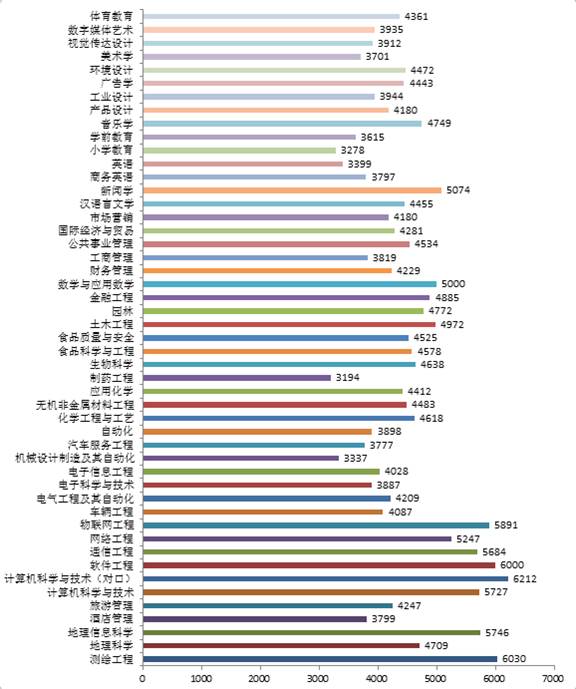 太阳成集团对2019届毕业生调查问卷调查结果显示,2019届本科毕业生平均月薪水平最高的专业为测绘工程、计算机科学与技术(对口)、软件工程专业,平均月薪在6000元以上,平均月薪水平最低的专业为机械设计制造及其自动化、制药工程、英语、小学教育专业,平均月薪在3500元以下。