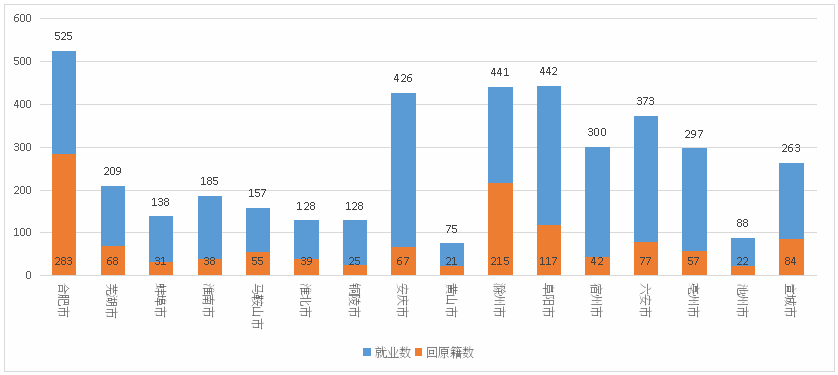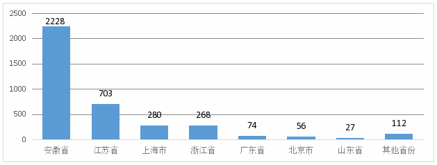 图2-16 2020届毕业生安徽籍毕业生回家乡人数分布