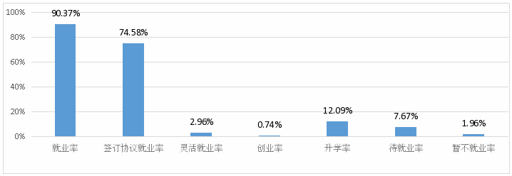 1根据教育部的统计口径:就业率=(毕业生总人数-待就业-暂不就业拟升学-其他暂不就业)/毕业生总人数。