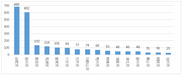 12滁州市。部分毕业生单位所在地没有具体到区或县,故将滁州市单独作为一个统计单位。
