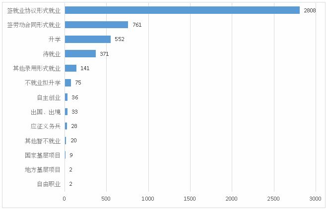 3统计范围是毕业去向为:签就业协议形式就业、其他录用形式就业、签劳动合同形式就业和应征义务兵的毕业生。