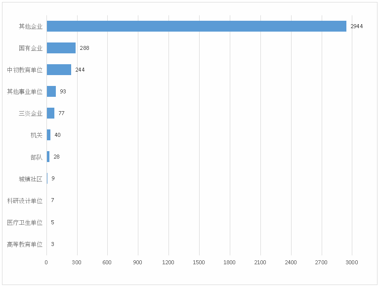 从上图可以看出,毕业生工作单位在滁州市内相对较多,周边县市相对较少。
